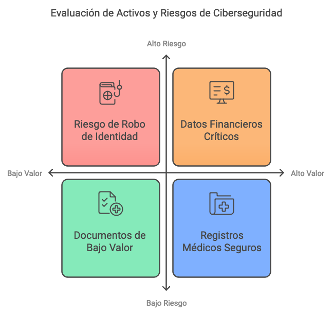 - Identificar activos críticos: Define qué información es más valiosa (ej., documentos personales, credenciales bancarias, archivos médicos).